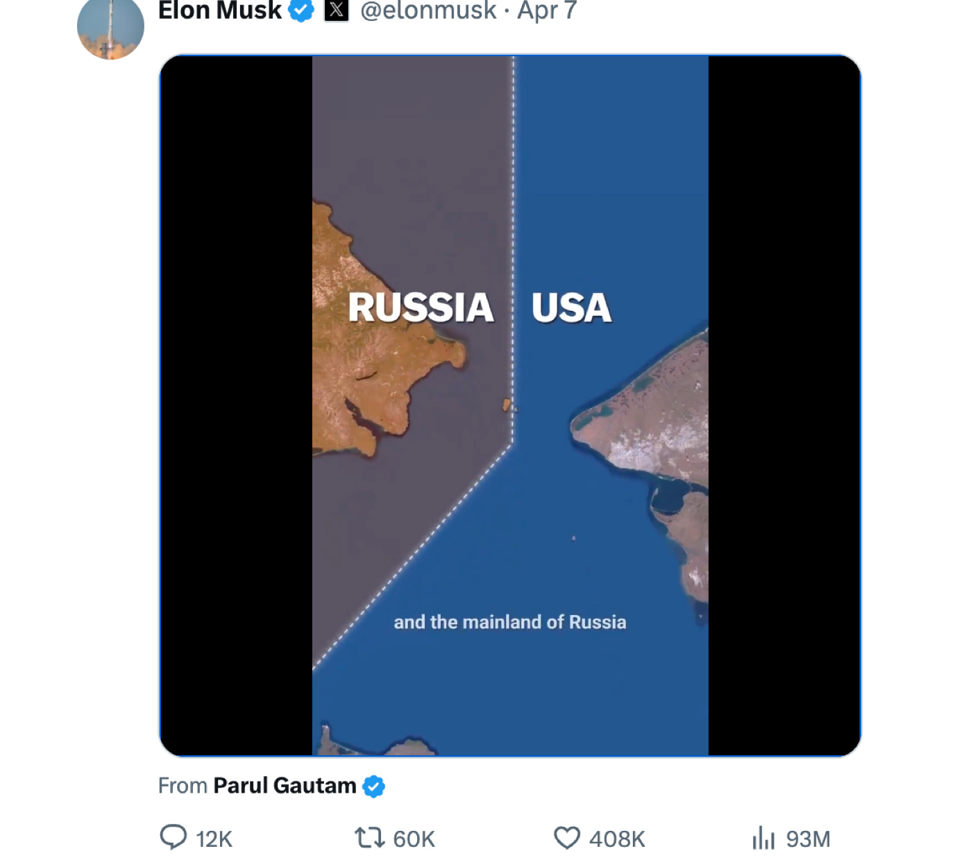 Do tego dodajmy wydarzenia pozornie bez związku, jak to, iż kilka miesięcy temu Elon Musk opublikował bez komentarza krótki, tajemniczy film, wyjaśniający, jak blisko siebie znajdują się Rosja i USA w Cieśninie Beringa u wybrzeży Alaski (zaledwie około 70 mil).