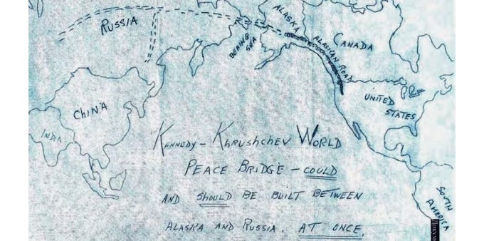 Most Światowego Pokoju im. Kennedy’ego i Chruszczowa. Można i należy go zbudować między Alaską a Rosją. Natychmiast. — notatka prezydencka z lat 1960